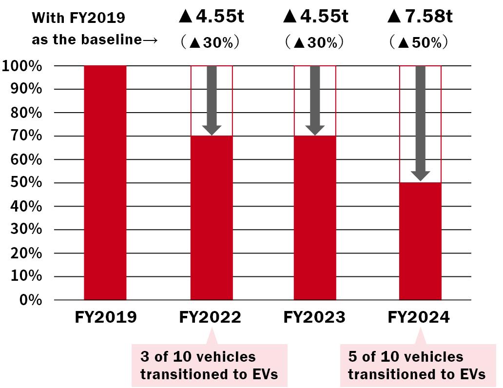 We are transitioning to electric vehicles with low CO2 emissions for company vehicles used in our daily operations.