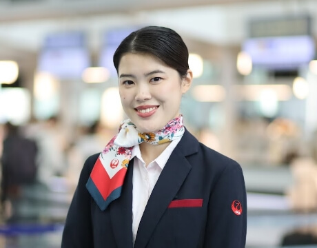 さまざまな部署の方にお話を伺うことで、たくさんの新しい発見がありました。お客さま目線では知りえないステーションオペレーション部門のお話では、どのような会社、部署が連携して一便一便を飛ばしているのかを知ることで、JALグループの連携の中で「自分は何ができるか」など、より具体的なグランドスタッフ像を想像することができました。また講師の方も親身に支えてくれ、グランドスタッフになった今でも活きる学びを得ることができたと感じています。