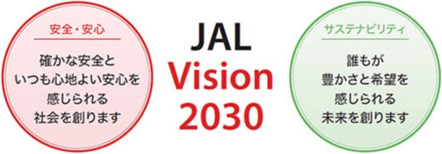JALグループは、これまでに培った強みを活かして、「安全・安心な社会を創る」と「サステナブルな未来を創ること」を骨子とした「JAL Vision 2030」を実現し、「世界で一番選ばれ、愛されるエアライングループ」となることを目指しています。
