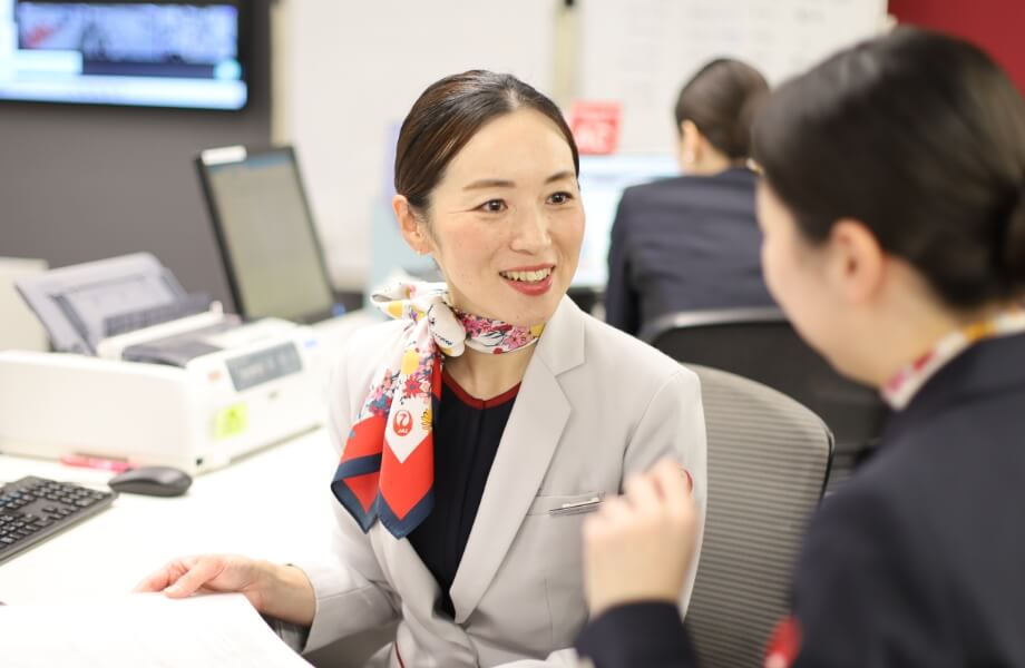 現在は、コントロール業務全般、ラウンジインチャージ(責任者)を主に担当しています。コントロール業務とは、安全運航を大前提としながら定時性を高め、最高のサービスを提供するため、出発関連のさまざまな業務を統括するデスク業務のこと。搭乗手続き締め切りの時間を過ぎて空港にいらっしゃったお客さまのチェックインの可否を判断したり、チェックイン可能となった場合に預け手荷物の搭載を調整するといった業務もその一つです。ラウンジインチャージとは、お客さまの快適なラウンジ滞在をサポートする業務のことで、イメージとしてはホテルのコンシェルジュのような役割です。